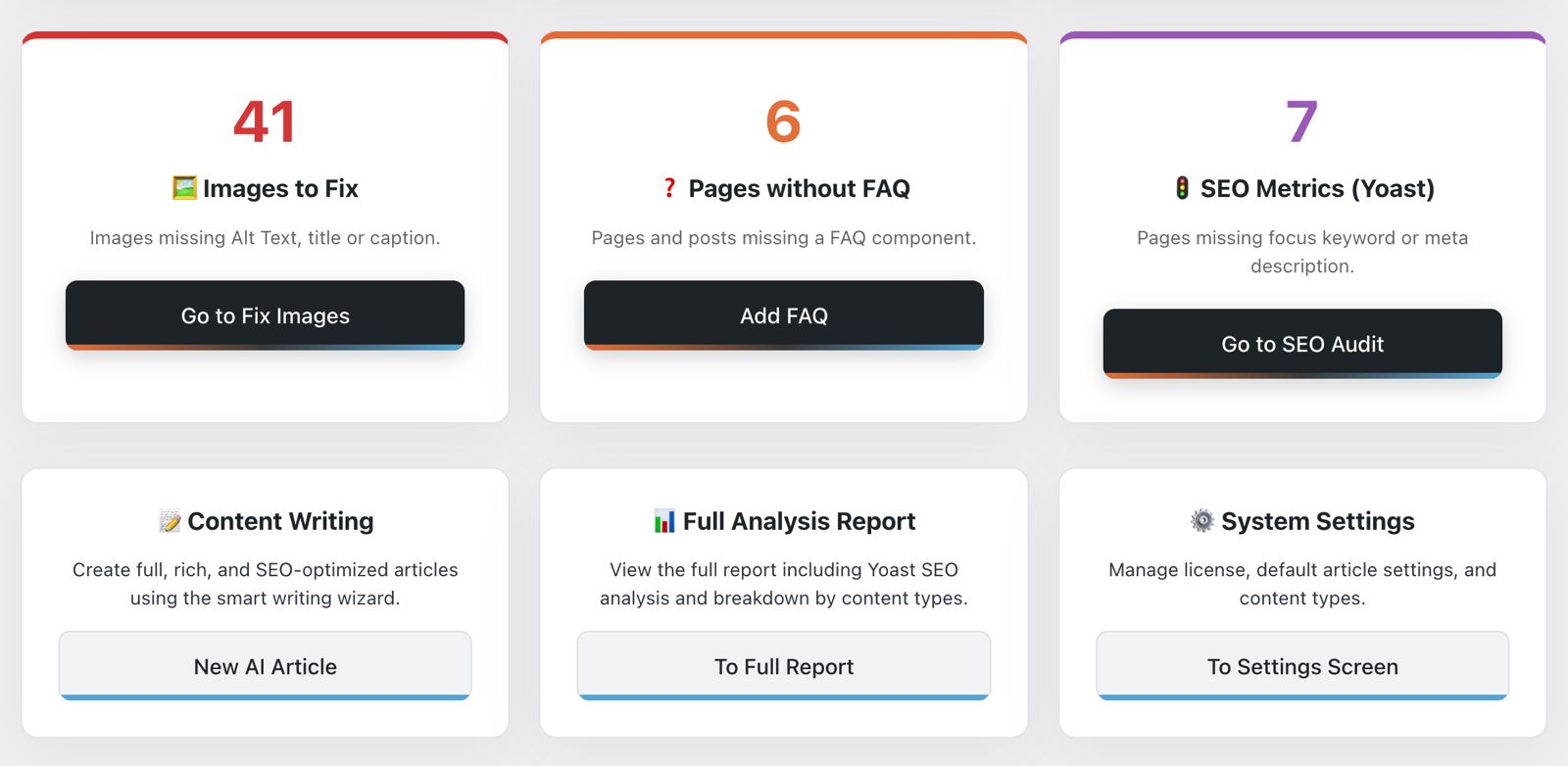 - A cleaner workflow for prioritizing and fixing problems across pages, posts, and CPTs